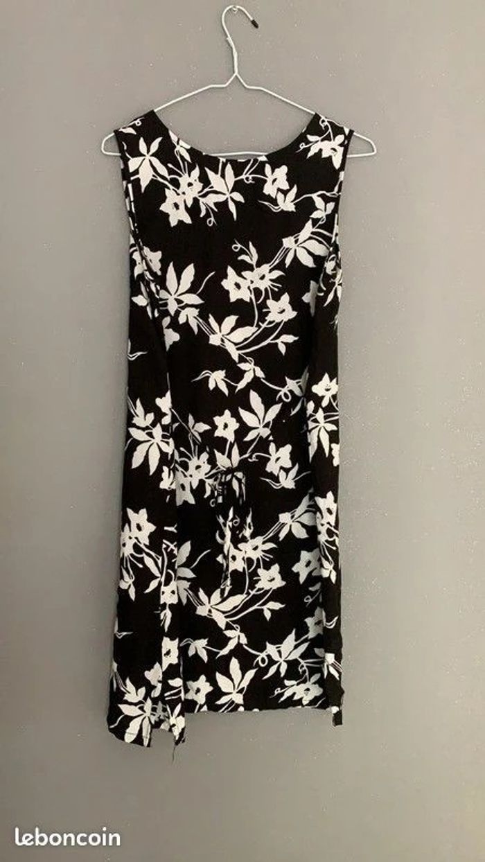 Robe Paradise Bay Taille S Noire à fleurs blanches Lien à nouer