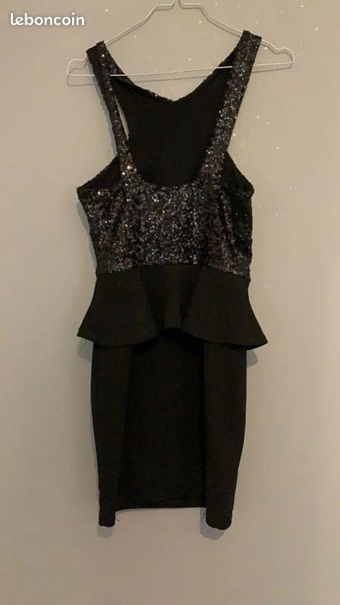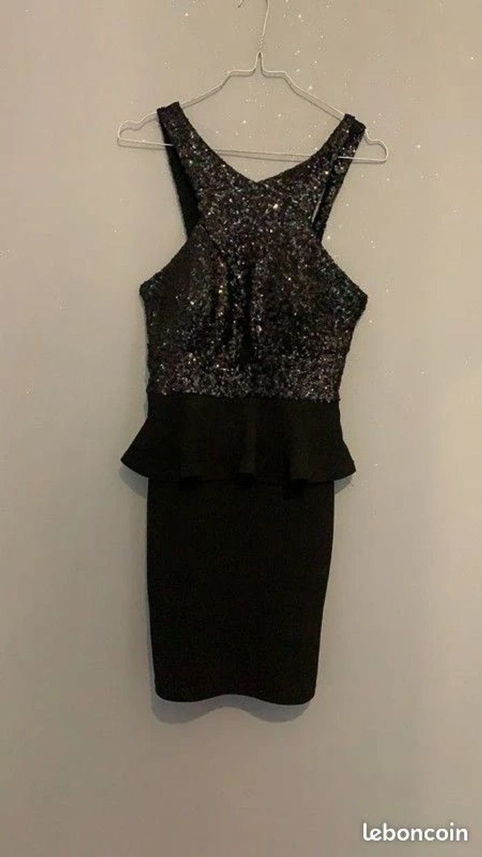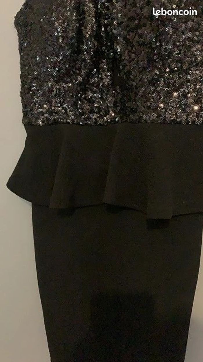 Robe moulante à sequins et volants Taille S Longueur robe : 84 cm Coque/Mousse au niveau de la poitrine