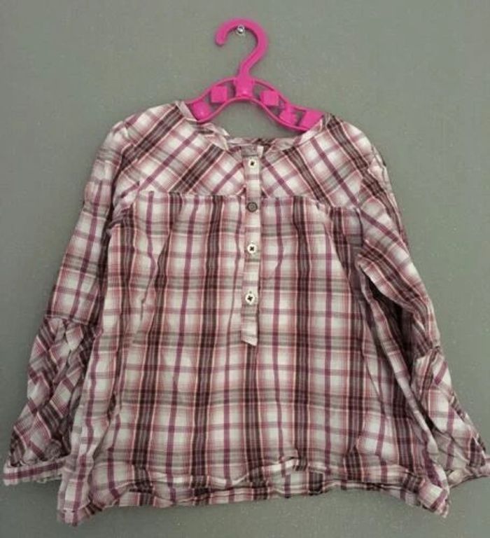 Blouse manches longues Marque : La Redoute Création Taille : 86 cm Style : à carreaux Bouton de rechange sur étiquette Lavage 40• 100% Coton