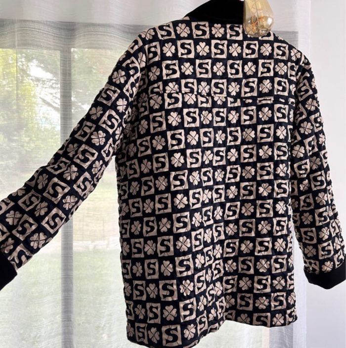 Veste Sandro Bleue marine / crème à motifs Col en velours doux Printemps / Hiver tiens chaud Taille XL ou L si loose souhaitée