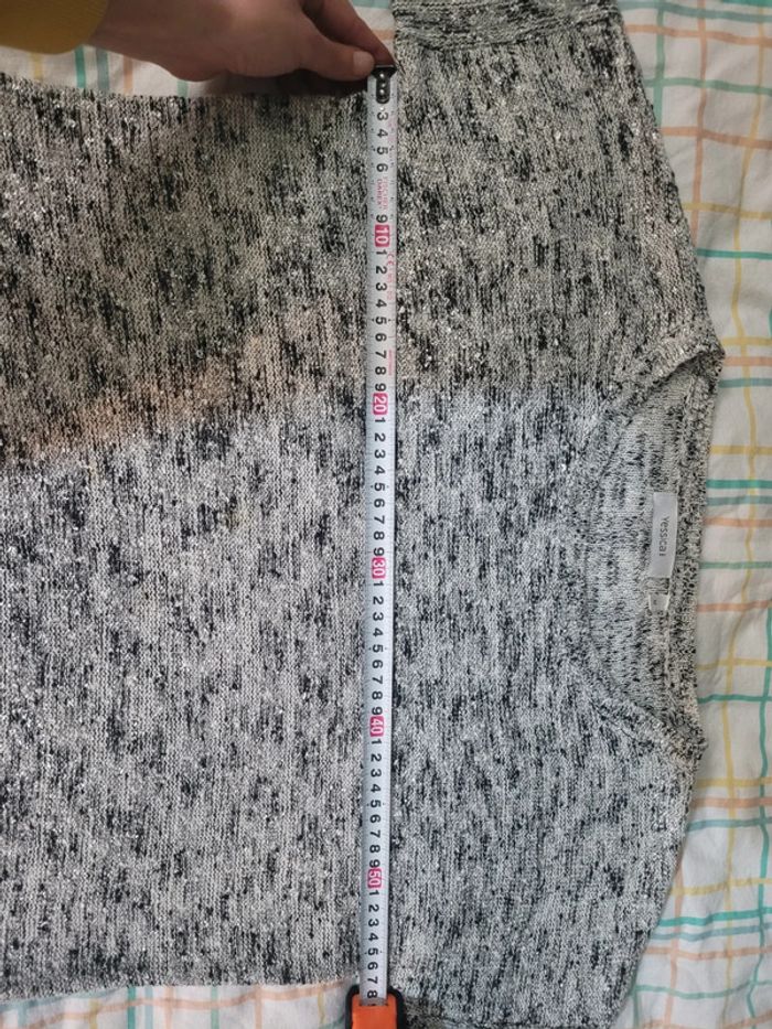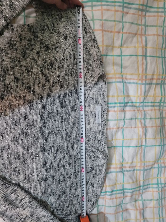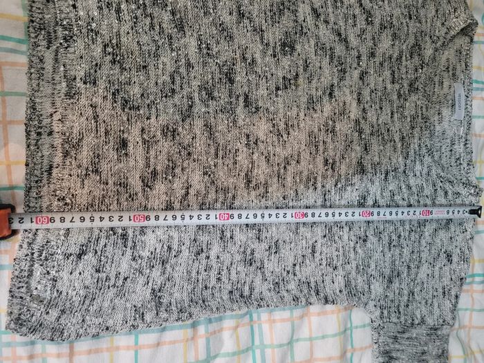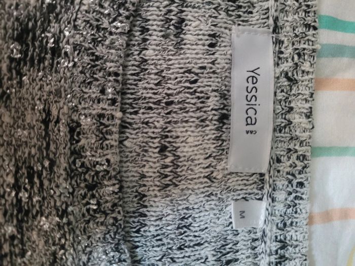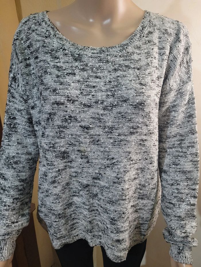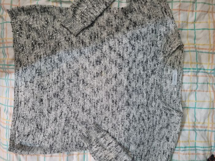 Pull noir et blanc, avec des sequins gris donnant un côté brillant.