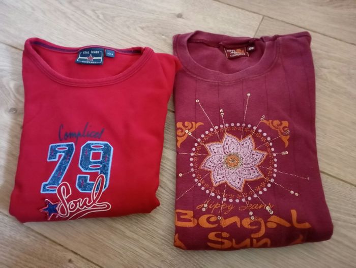 Lot de 2 tee shirt manches longues Marque complice Taille 10 ans Un rouge et un bordeau très bon état dessin pas abîmé