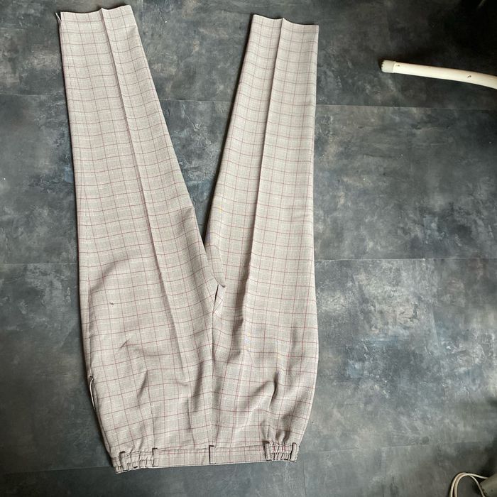 Pantalon écossais prince de galle, fendu en bas des jambes Beige noir et rose fuchsia 100% polyester La ceinture mesure à plat sans tirer 37 cm, va jusqu’à 40 cm en tirant, il y a 2 emplacements sur la ceinture qui sont élastiques Longueur niveau braguette 32 cm Longueur entre jambe 76,8 cm Largeur à plat bas des jambes 19,5 cm Taille 38/40 Canda C&A