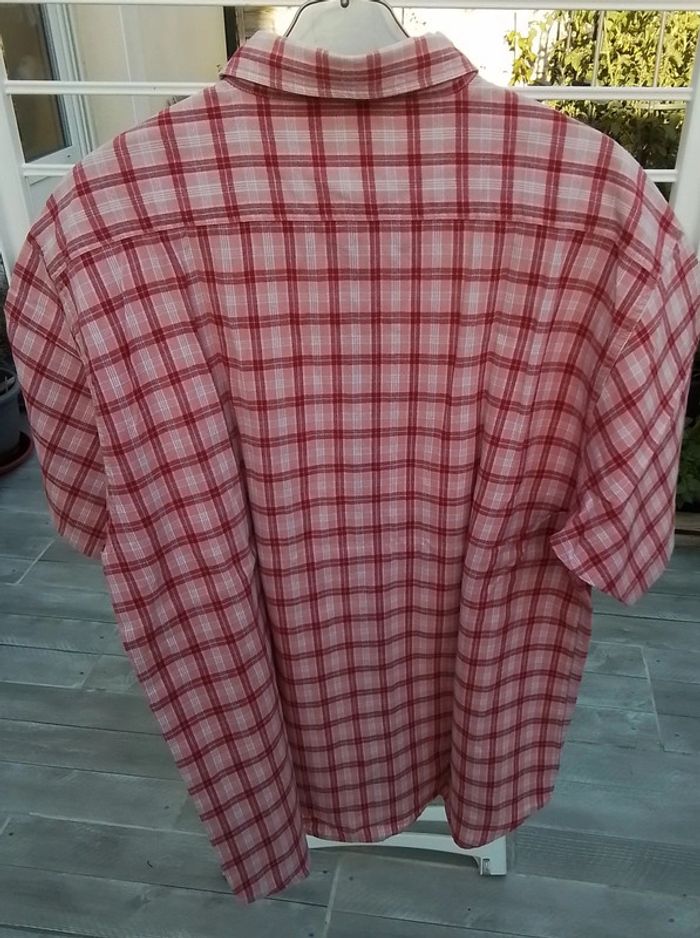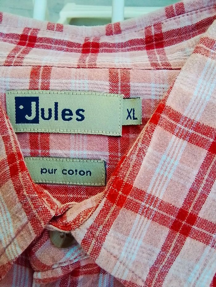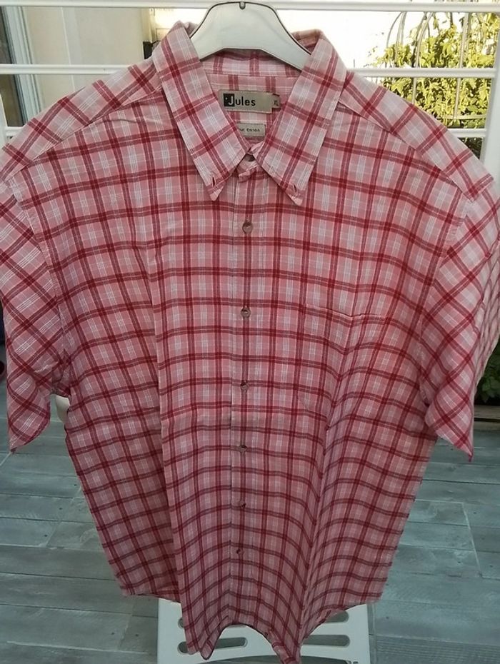 Chemise à manches courtes Jules, taille xl, dans les tons de rose et framboise, deux boutons supplémentaires fournis, coton, très bon état. livraison par Mondial Relay car je suis handicapé et autres points d'expédition sont trop loin