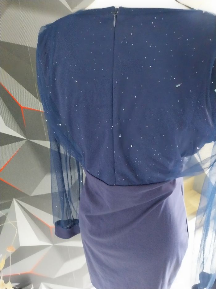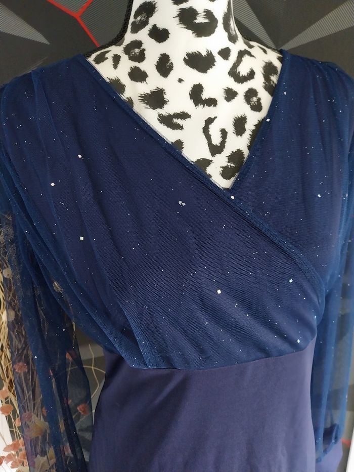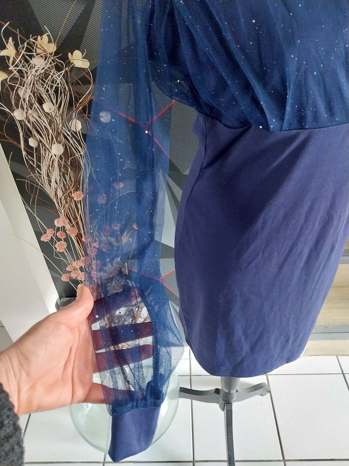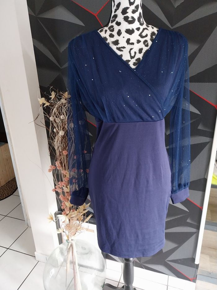 Jolie robe chic Manche transparent Haut et manche brillant argenté