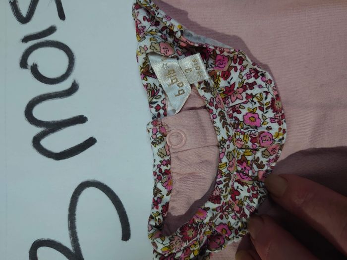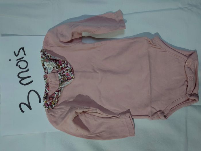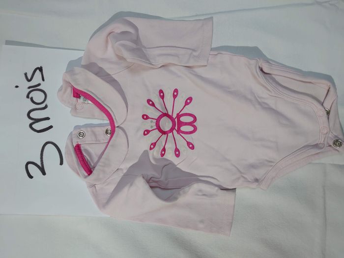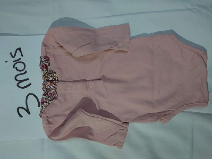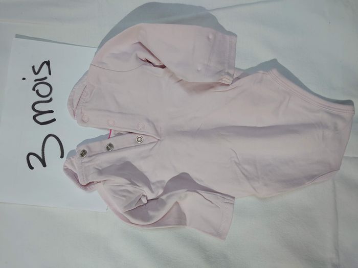 2 bodies manches longue rose avec col, très bon état, 3 mois, marque obaïbi et babibau