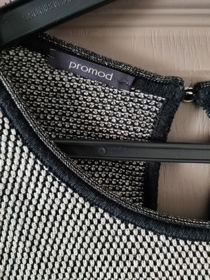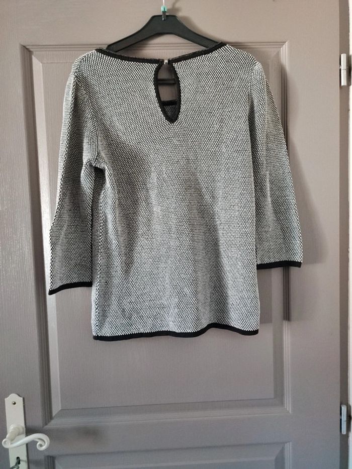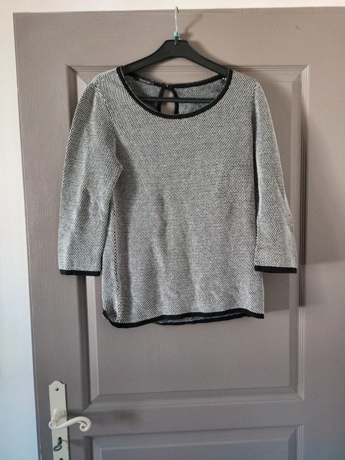 Très joli haut. Noir et blanc avec petits filaments dorés. Plus d'étiquette de taille