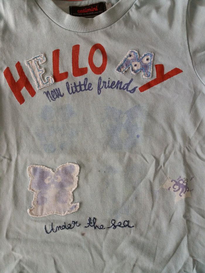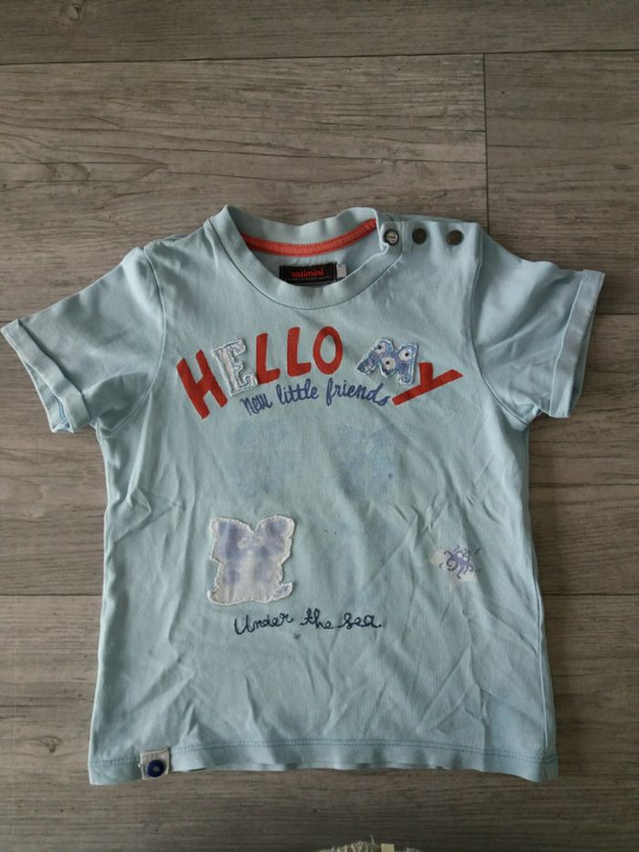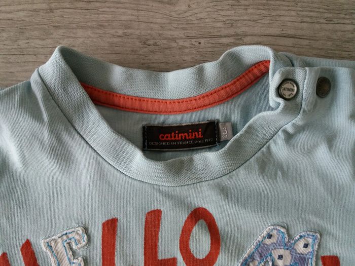Tee-shirt manches courtes Catimini Taille 3 ans . 100% coton. Ouverture par pressions sur l'épaule. Petites tâches de crayon à l'avant (voir photo) #3ansgarçonvivi35470 #3ansgarçon #3ansgarçoncatimini