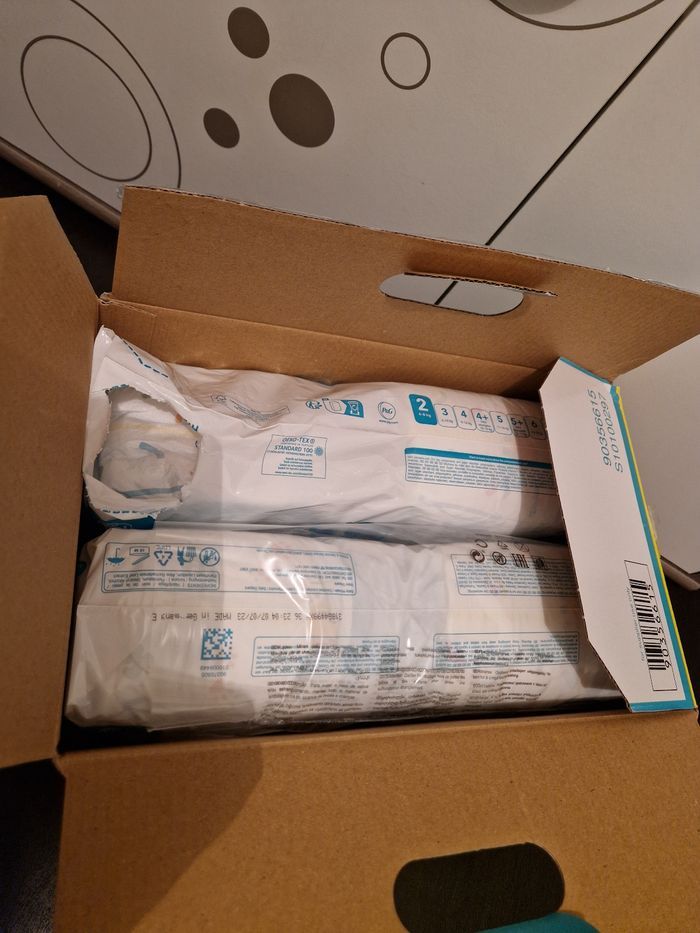 1 paquet neuf et un paquet entamé. Ne manque pas beaucoup de couches