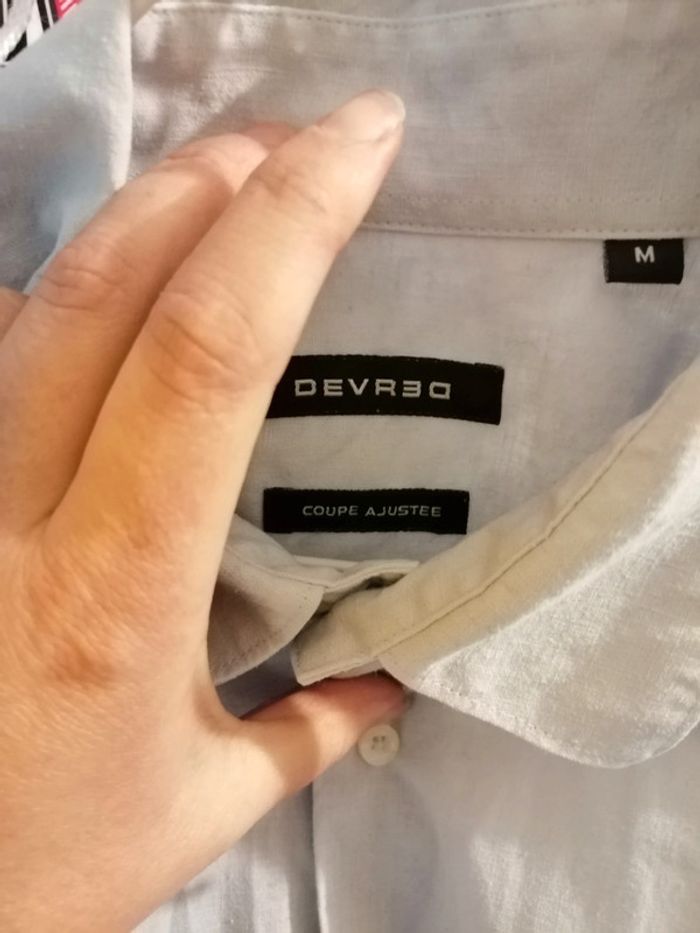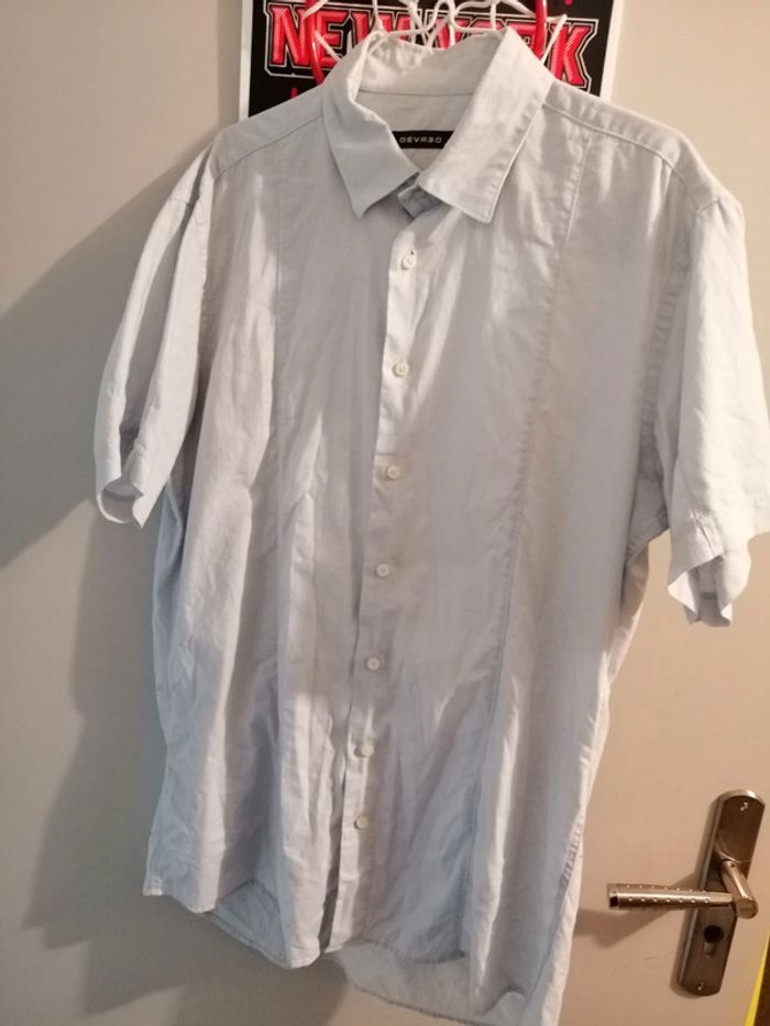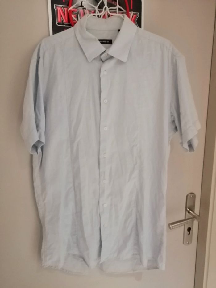 Chemise manche courte. Bleu ciel, pastel, très clair. Mise une fois pour un mariage. Chemise ajustée. Taille M Devred #devred #coupeajustée #tailleM