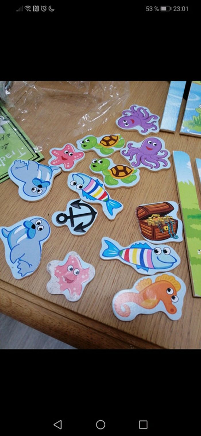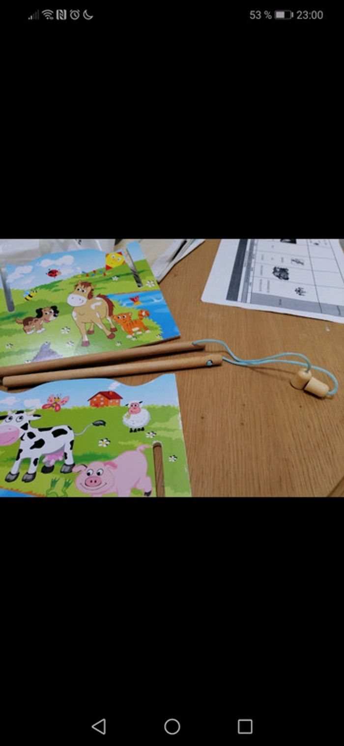 Jeux pêche à la ligne en bois.