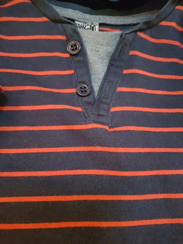 Petit pull léger . Taille petit . Tape a l oeil .bleu marine et orange .