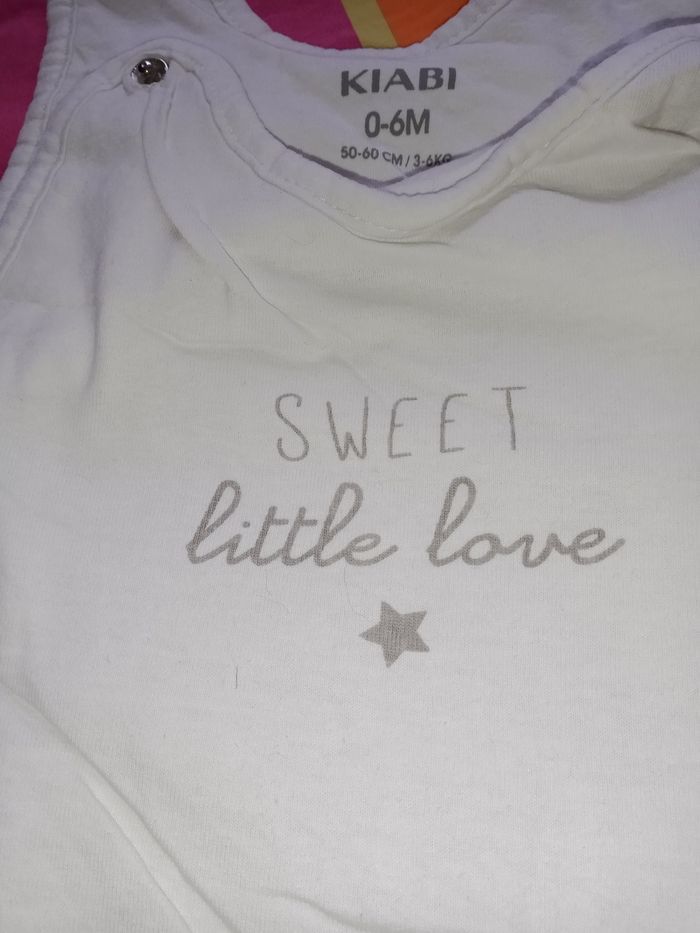 Gigoteuse 0-6 mois Blanche"Kiabi" sweet little love avec pression pour nouveau née 2 tâches visible sur la photo