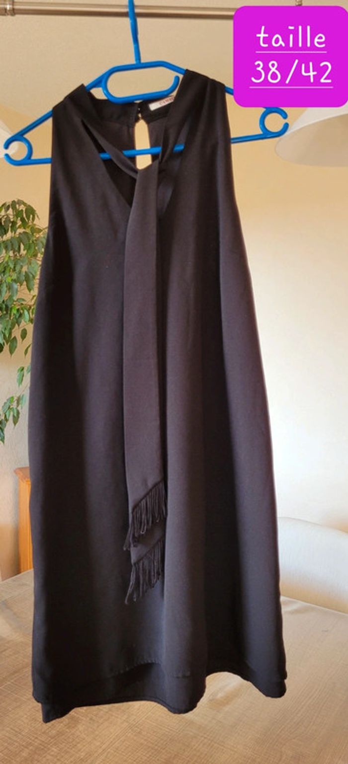 Robe portée 1 ou 2 fois Avec doublure légèrement plus longue en bas Des lanières se nouent au niveau du col Plus d'étiquette de taille mais je pense qu'elle peut aller d'un 38 à un 42 : je vous laisse regarder les mesures sur les photos. Moi je l'avais portée ceinturée pour marquer la taille Pour les détails voir photos #taille38babs67800 #taille40babs67800 #taille42babs67800 #femmebabs67800 #vetementsfemmebabs67800 moins20babs67800