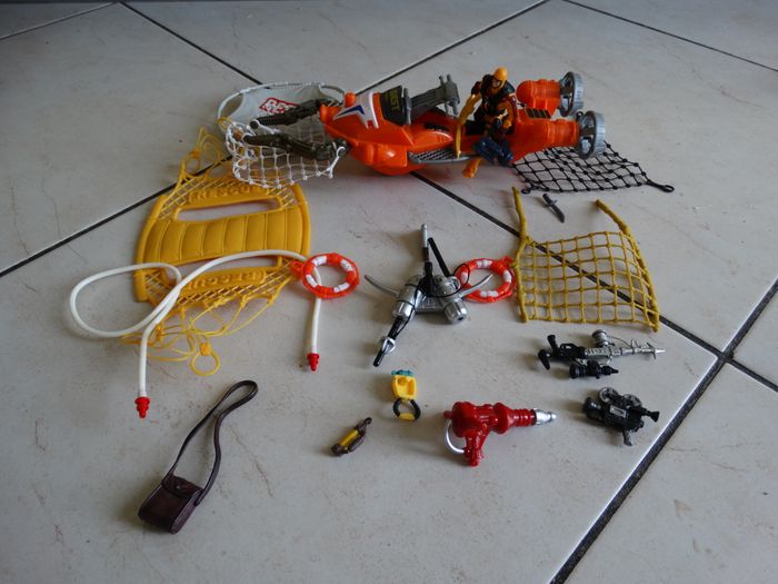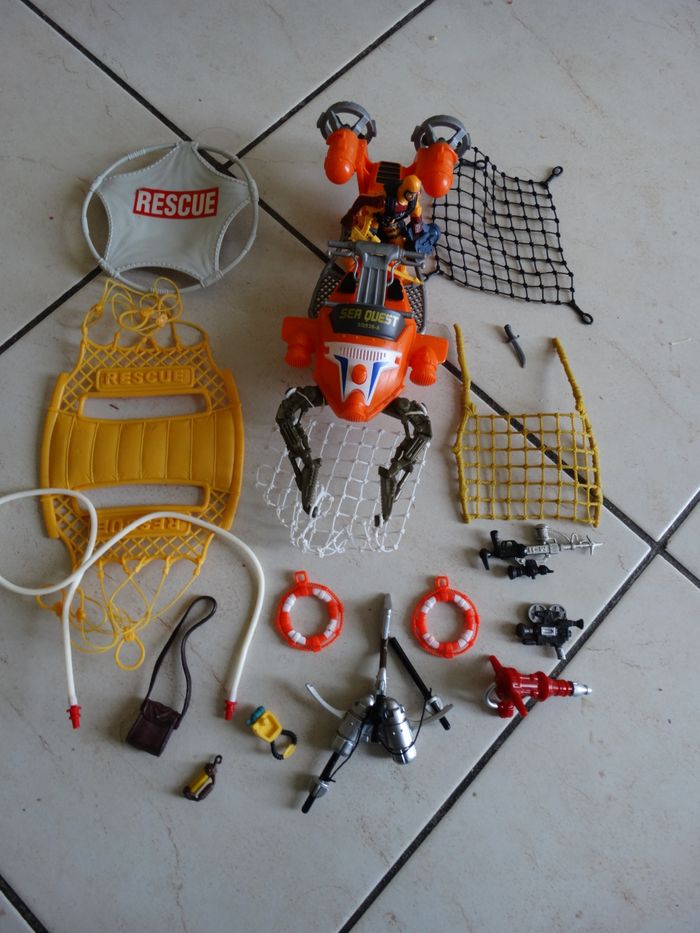 Jouet appareil de sauvetage rescue ser quest, avec figurine bonhomme plongeur sauveteur, de nombreuses figurines accessoires dont des bouées, des filets. L'appareil mesure 28 cm. Très bon état.