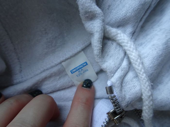 Ensemble jogging survêtement de sport, veste sweat zip et pantalon, de chez décathlon, taille 8 ans, gris clair. Très bon état.