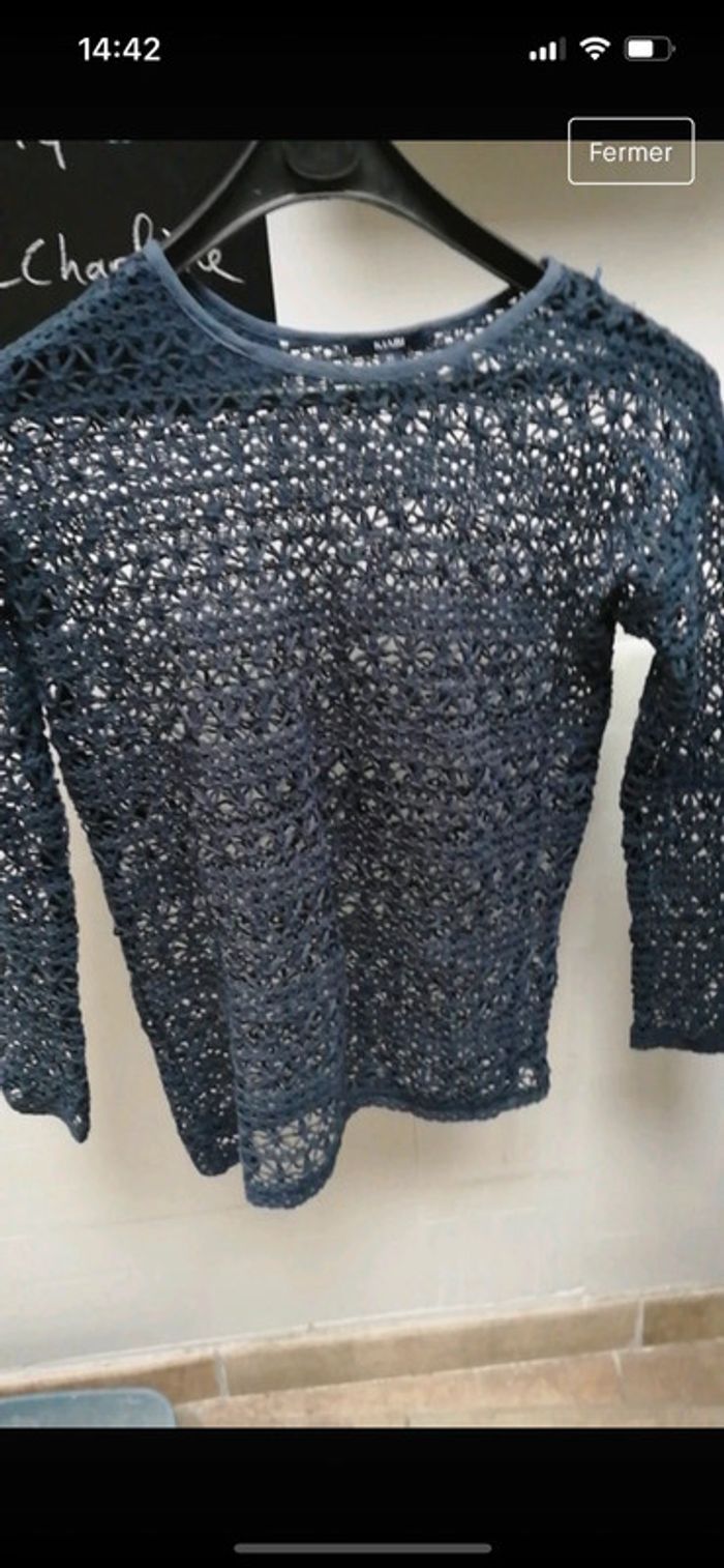 Je vends ce pull porter quelque fois de marque kiabi couleur bleu et de taille xs