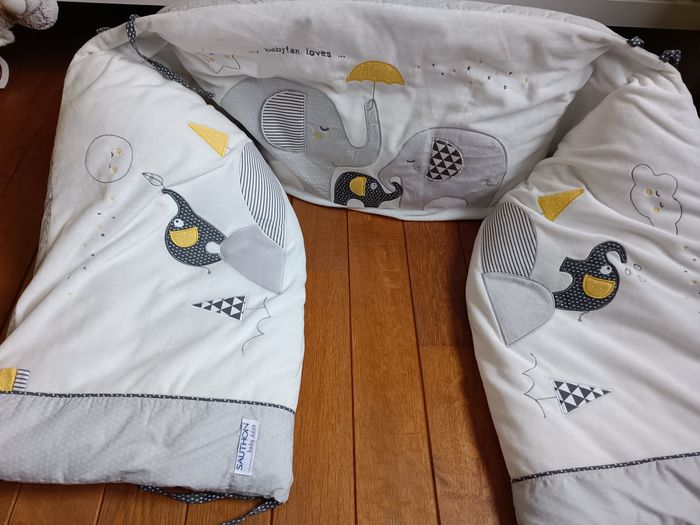 Tour de lit babyfan bon état mais il faudra un bon nettoyage il traine depuis un moment quelque tâche jaune voir sur la troisième photo.