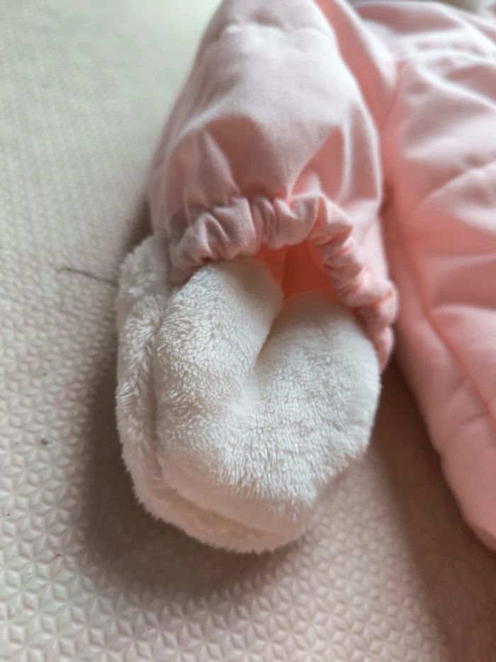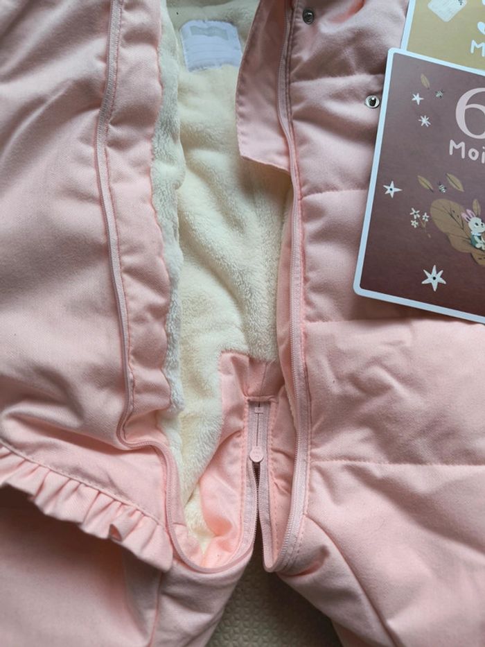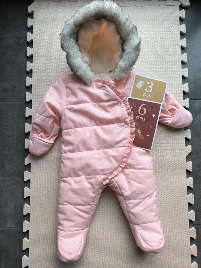 Combinaison Obaïbi 3/6mois, mais correspond plus à un bon 6mois... Notre fille le mettait lorsqu'elle avait 6mois (je lui mettais du 9mois a ce moment) Porté 2fois