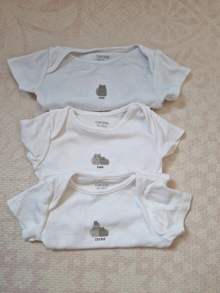 Body manches courtes Le "one" est un peu passé en couleur à la machine Les deux autres jamais porté 3mois