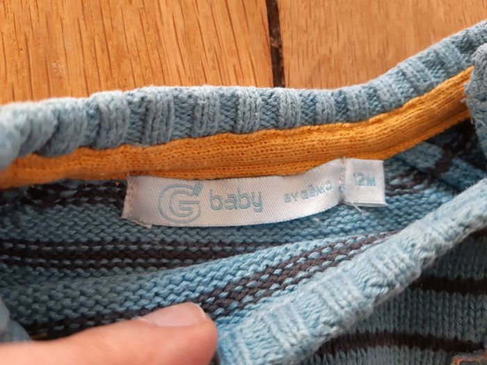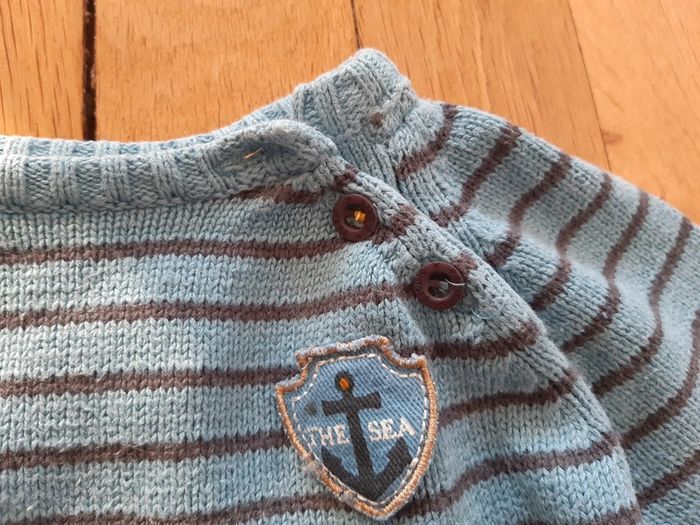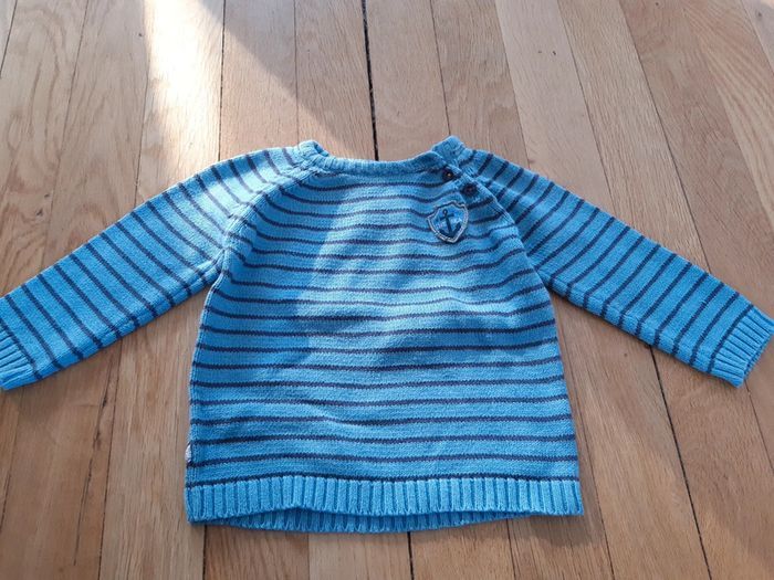 Pull type marinière de la marque Gemo. Bon état car il manque un bouton, celui du haut donc pas trop gênant. #mariesouc_garçon12mois