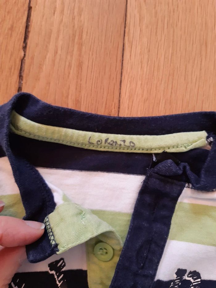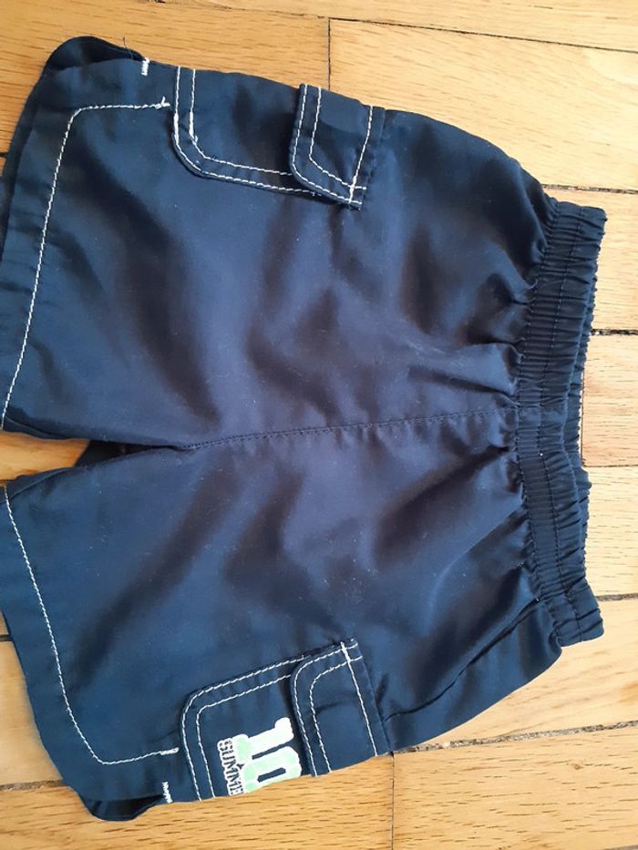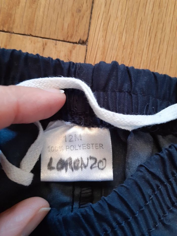 Ensemble comprenant un short en polyester et un t-shirt coton. Bon état car nom marqué sur les 2 éléments. #mariesouc_garçon12mois