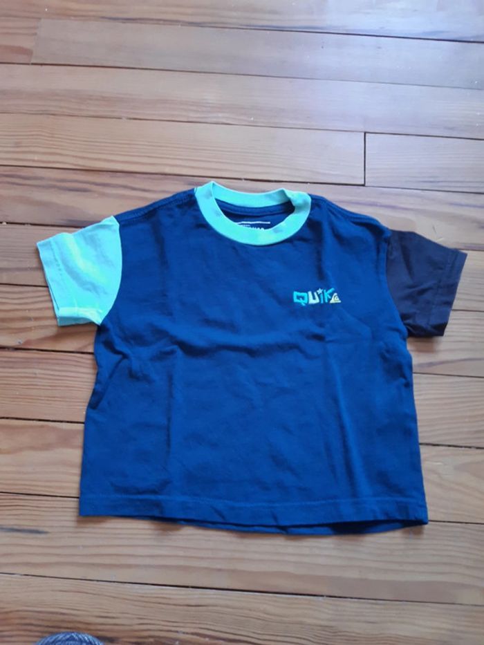 T-Shirt Quiksilver bleu canard/vert Peu porté, très bon état. #mariesouc_garçon24mois.