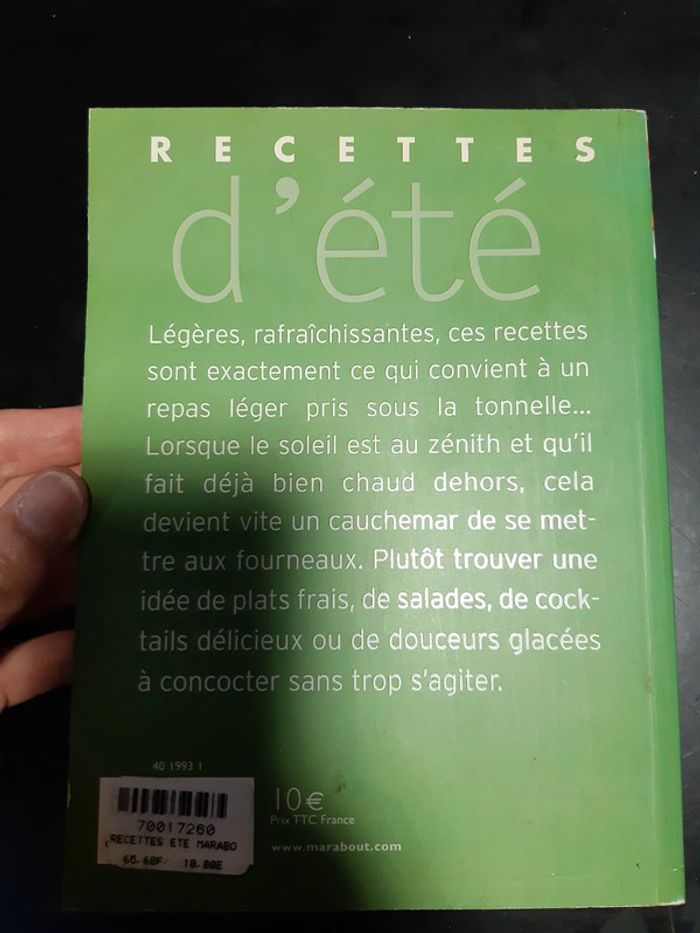 Petit livre de cuisine sur les recettes d'été. Couverture un peu jaunies mais les pages sont en très bon état. Un réduction supplémentaire est ajoutée pour l'achat d'un lot de livre. #mariesouc_livre, #mariesouc_cuisine