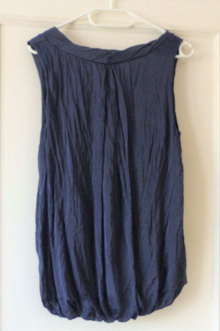 Haut en soie bleu marine, bouffant, entièrement doublée. Elastique en bas Jamais porté. #mariesouc_38, #mariesouc_40, #mariesouc_42, #mariesouc_S, #mariesouc_M #mariesouc_L #mariesouc_haut #mariesouc_été