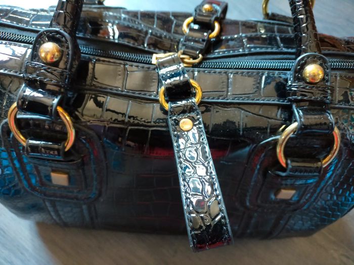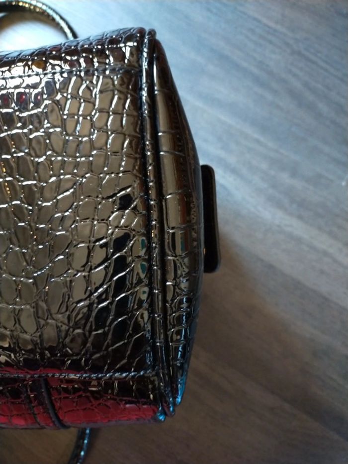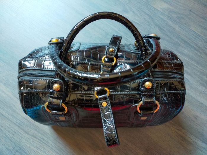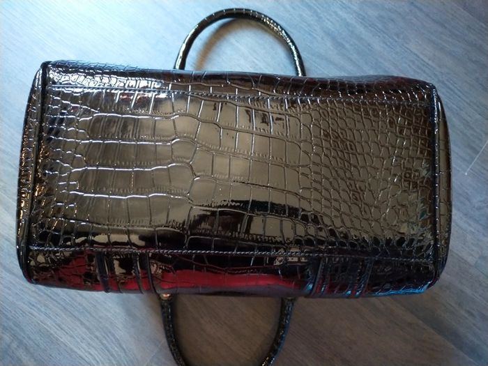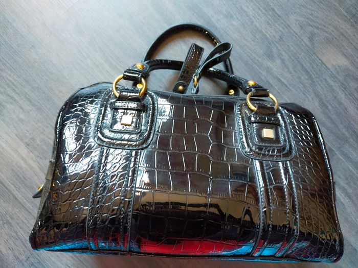 Sac bowling noir vernis Plusieurs poches intérieures Aucune griffe extérieur Dimensions 32/20/18 cm