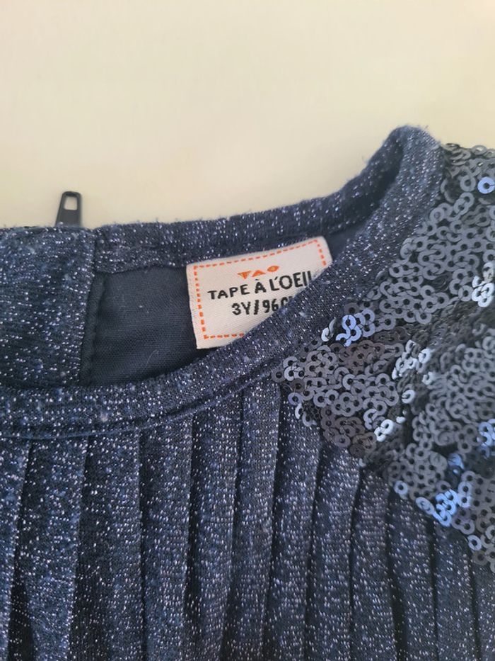 Robe de fête - Tape à l'oeil - 3 ans Bleu marine a sequins et paillettes Zip invisible au dos TAO