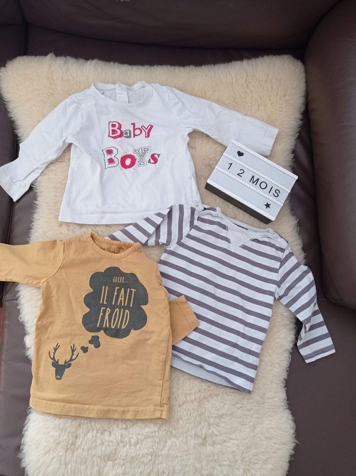 Bonjour je vend 7 sweats différentes marques, 2€ les deux Disney et 1€ les autres. D'autres articles sont disponibles en 6, 9 et 12 mois.
