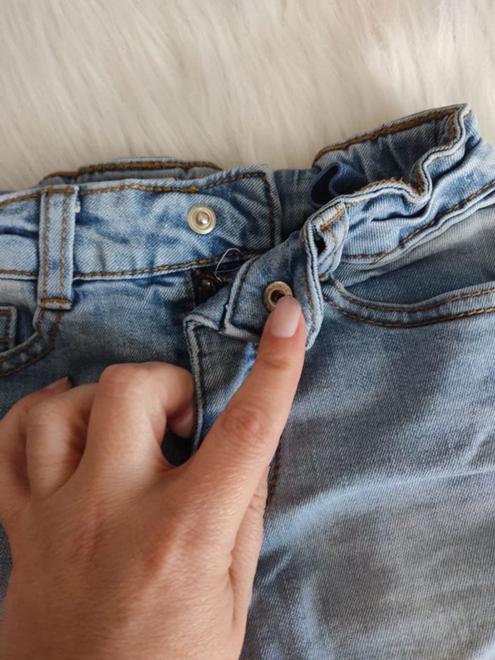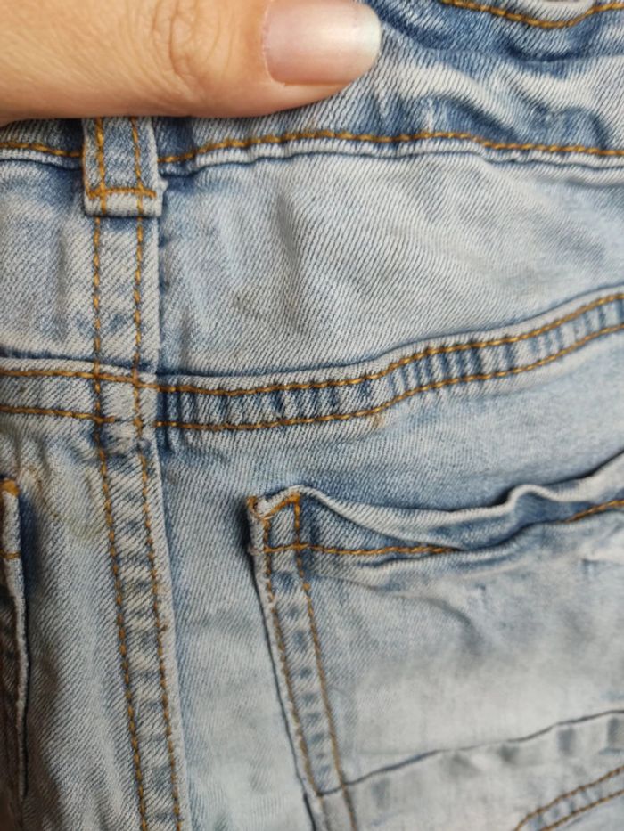 Coupe slim. Légèrement taché en haut des fesses mais peu porté