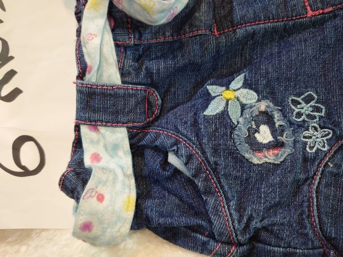 jean avec ceinture tissu, broderies déco devant, 6 mois, marque influx