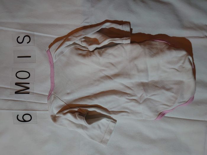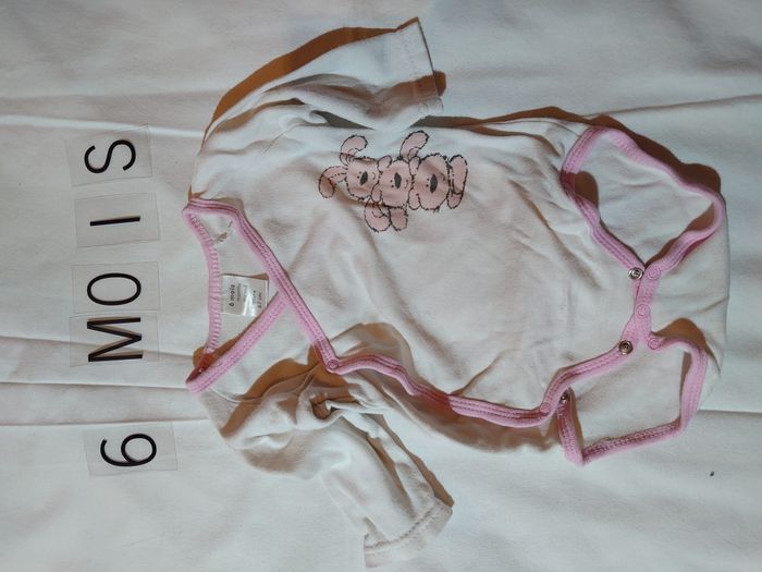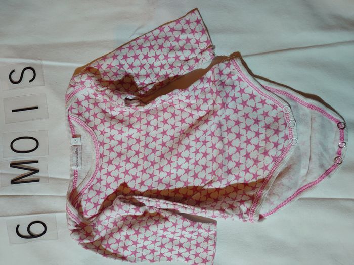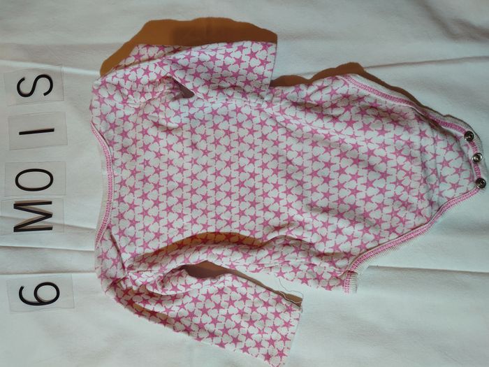 2 bodies manches longues, bon état, 6 mois, marque bisoucaillou pour celui avec les étoiles et l'autre pas de marque