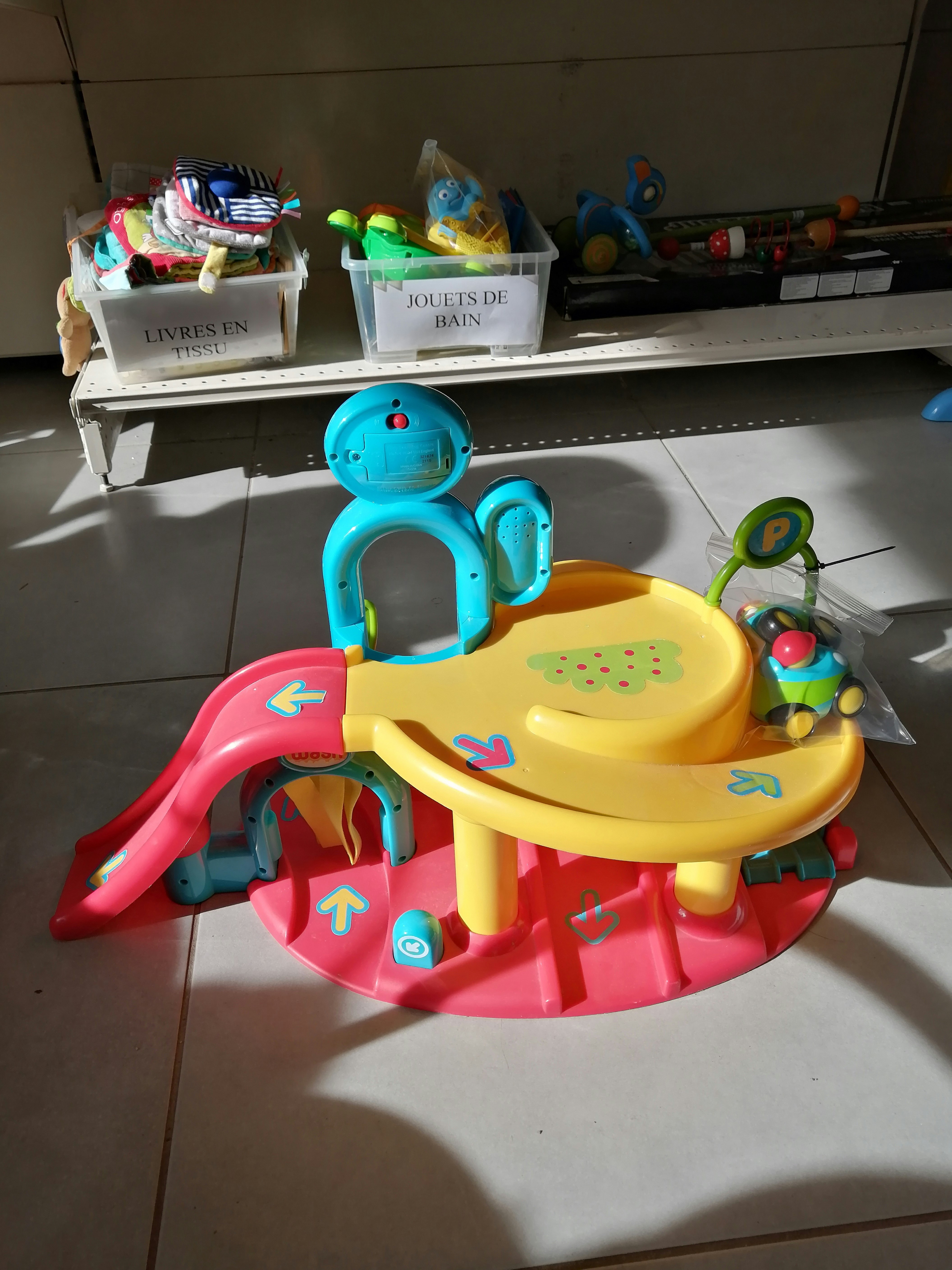 Garage avec circuit Très bon état 2 voitures Boutons avec musique