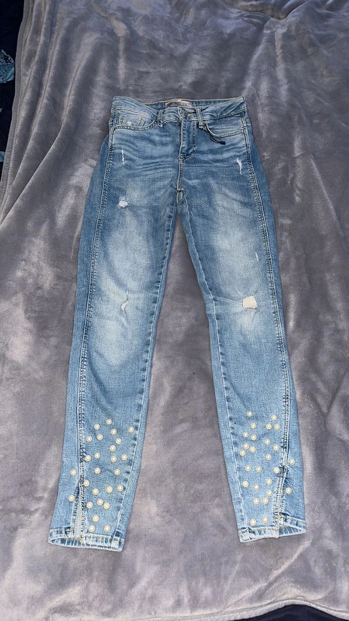 Zara femme Jeans slim bleu claire perle XS - photo numéro 1