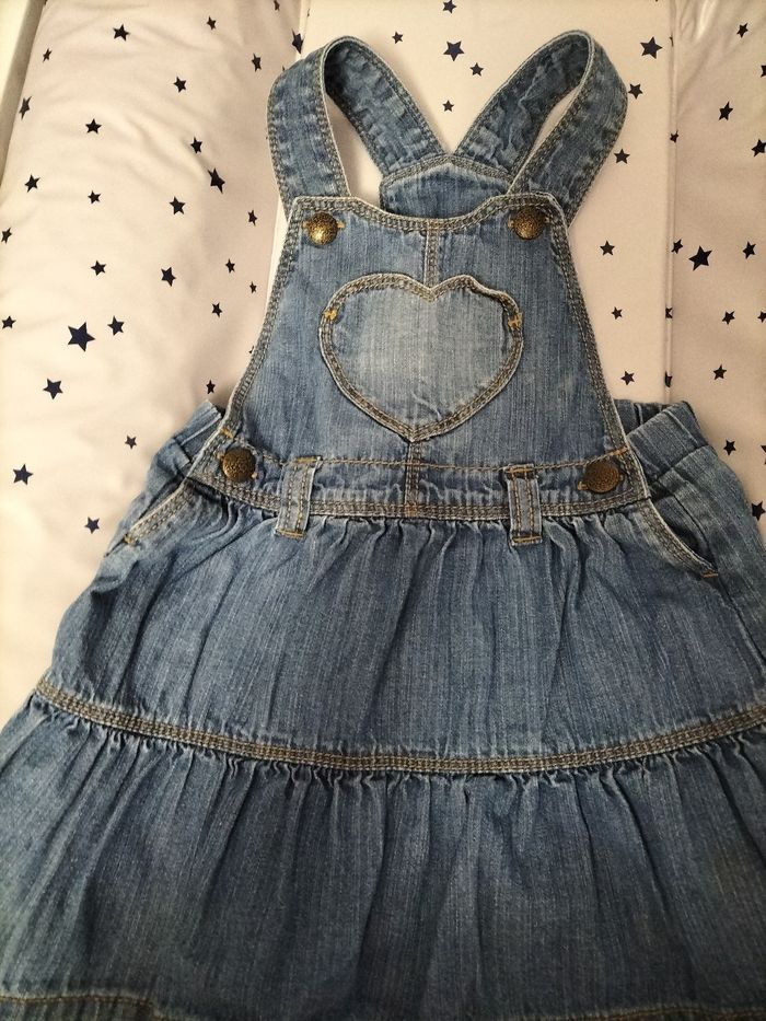 Robe salopette en jean, avec chemisier Taille 18 mois Pas de tâches