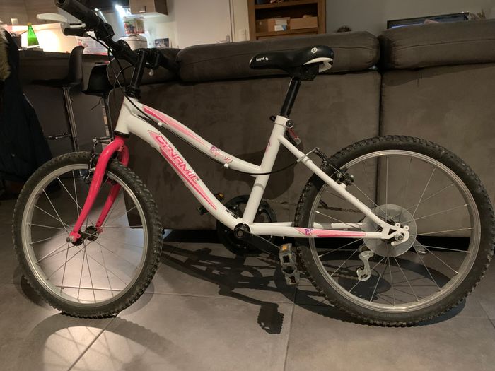 VTT fille 20 Pouces, pneus et poignées de freins changés, poignée de changement de vitesse un peu dure.