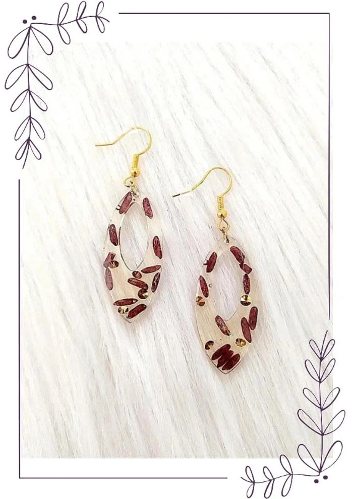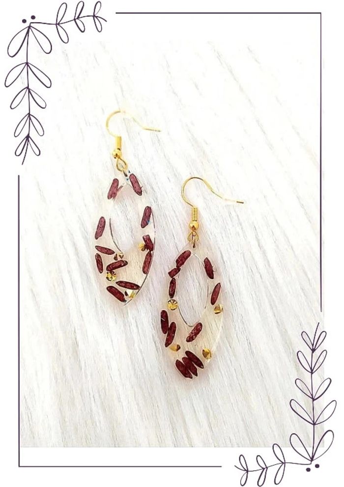 #cencovbijoux Boucles d'oreilles ovales en résine avec grains de riz Longueur 6 cm. Largeur 1,7 cm. Neuves fait main