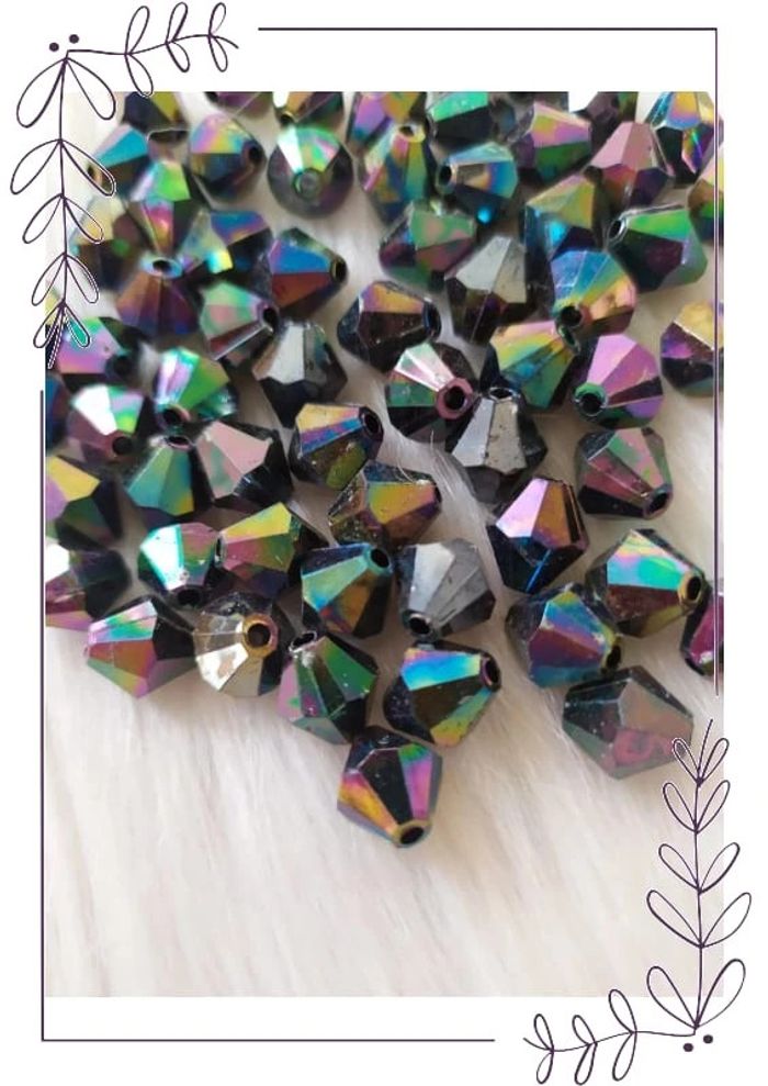 #cencovbijoux Lot de 67 grosses perles à facettes à reflets astro Hauteur 1 cm, diamètre 0,8 cm. En plastique.