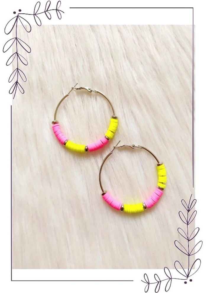 #cencovbijoux Anneaux créoles diamètre 5 cm color block fluo jaune et rose Neuves.