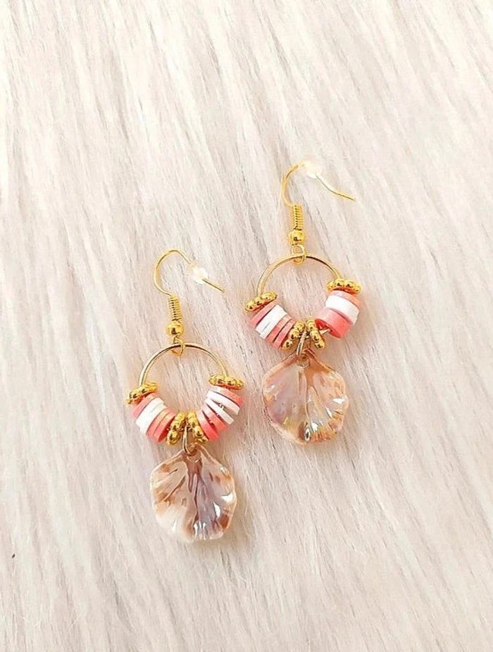 Boucles d'oreilles rondes avec breloque coquillage style bohème - photo numéro 1