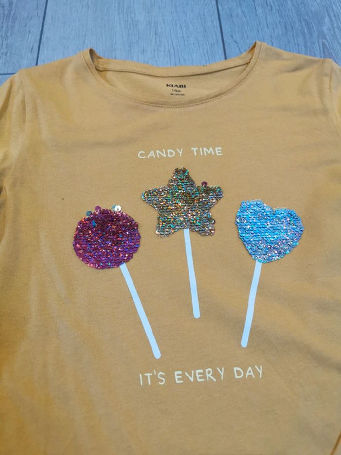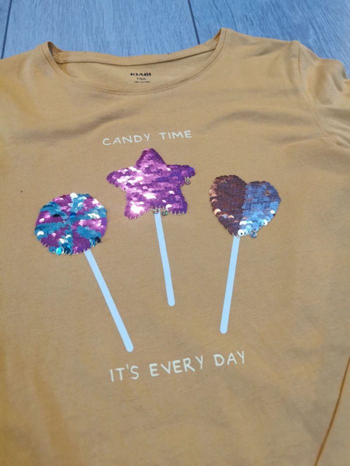 Tee shirt manches longues Kiabi Sucettes en sequins réversibles Légèrement décousue (voir photo) mais en très bon état #myriampage_fille10ans