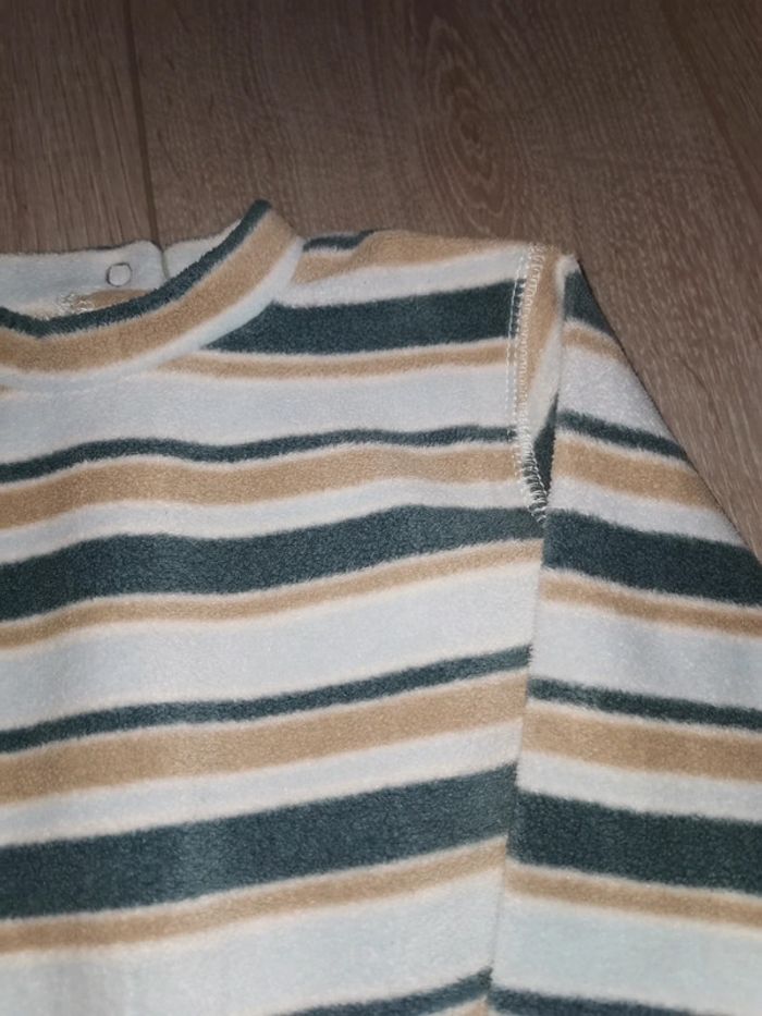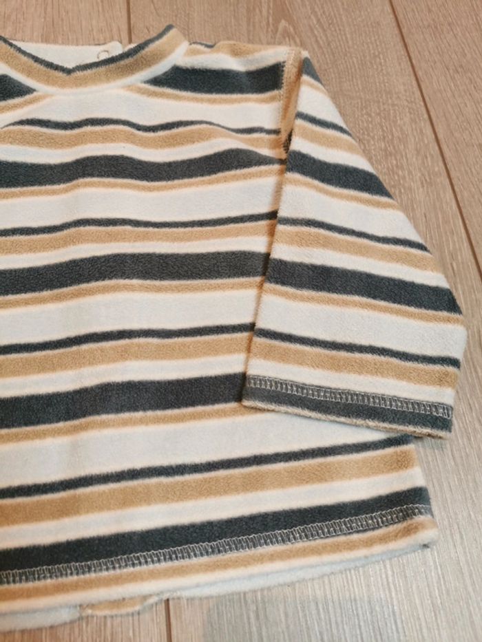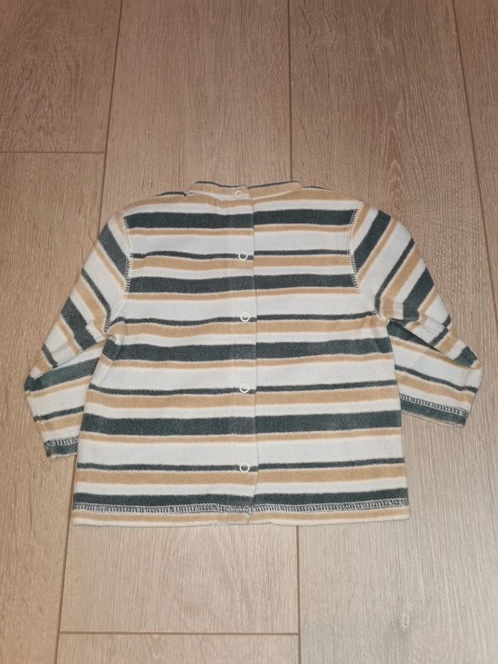 Pull polaire Kitchoun Entièrement pressionné dans le dos A rayures bleu et beige Très bon état #myriampage_garçon12mois