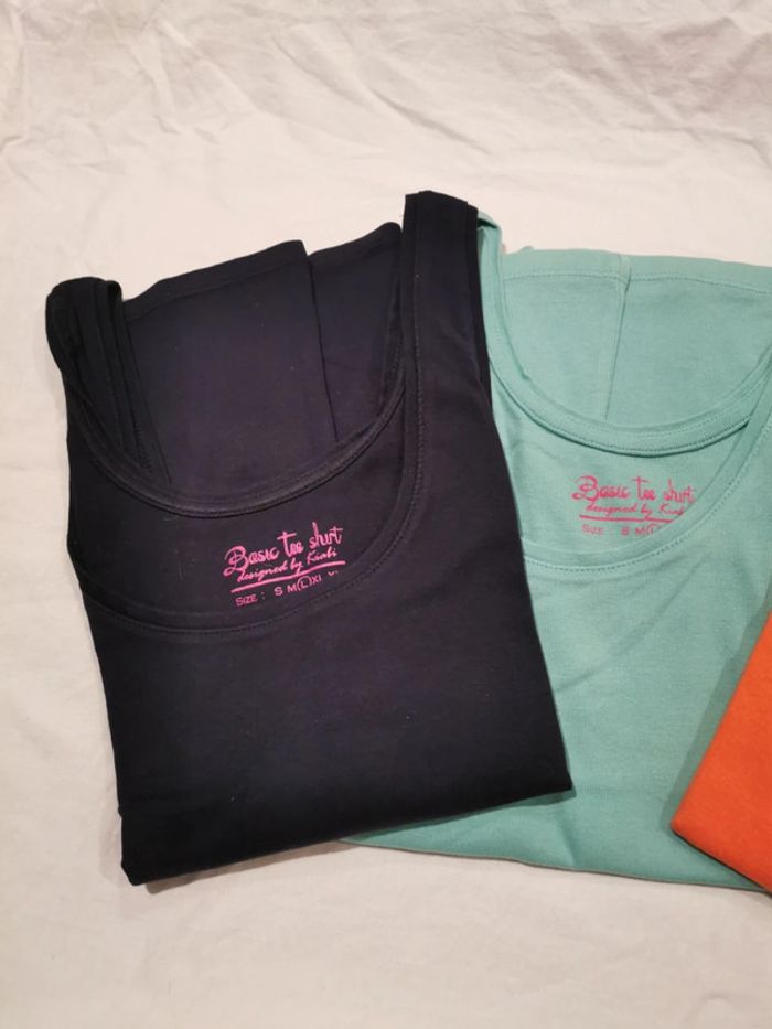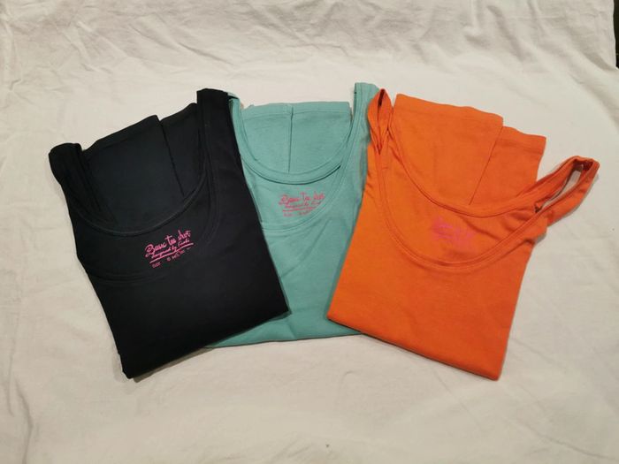 Lot de 3 débardeurs Kiabi Bleu marine, vert d'eau, orange #myriampage_femmetaille40