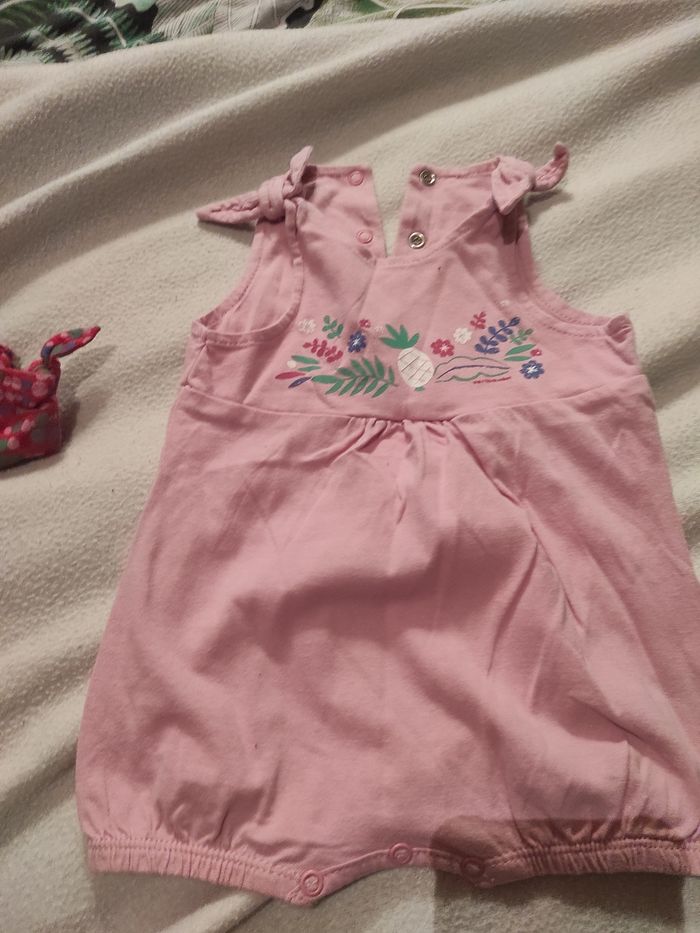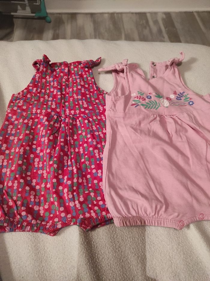 Lot de 2 combishorts, taille 3 mois, 3 pressions dans le dos et 3 pressions pour changer la couche, très bon état.