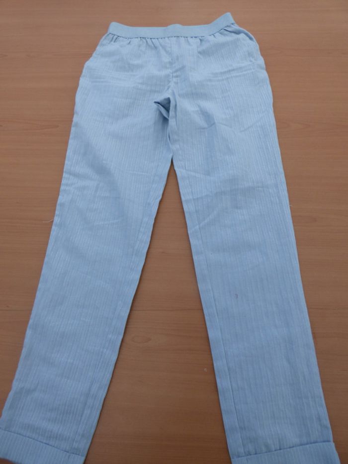 pantalon printemps été bleu ciel à fines ratures argentées poches décoratives