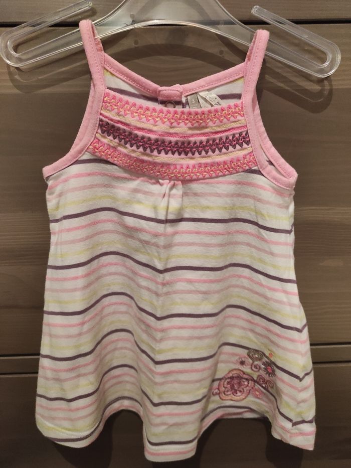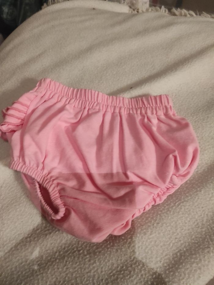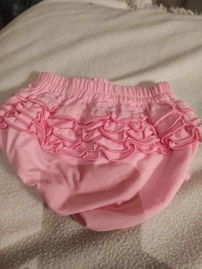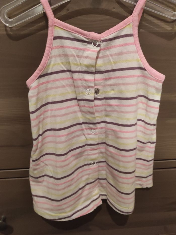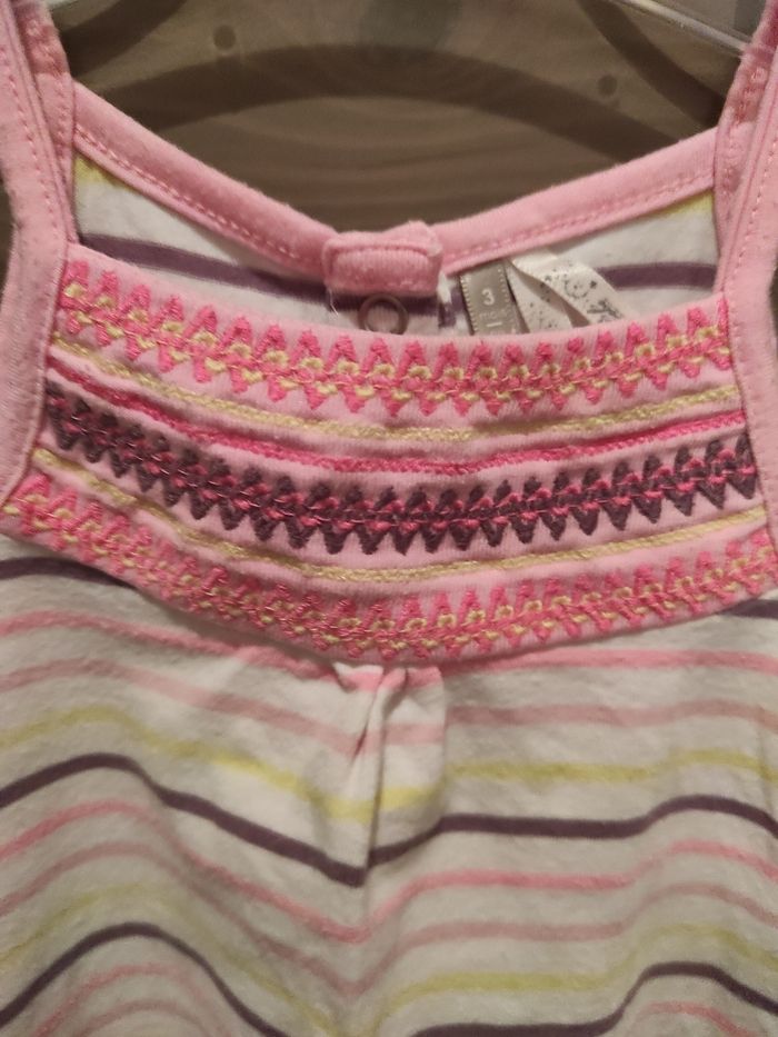 Robe bretelles, pressions tout le long du dos, avec culotte rose assortie. Taille 3 mois. Très bon état