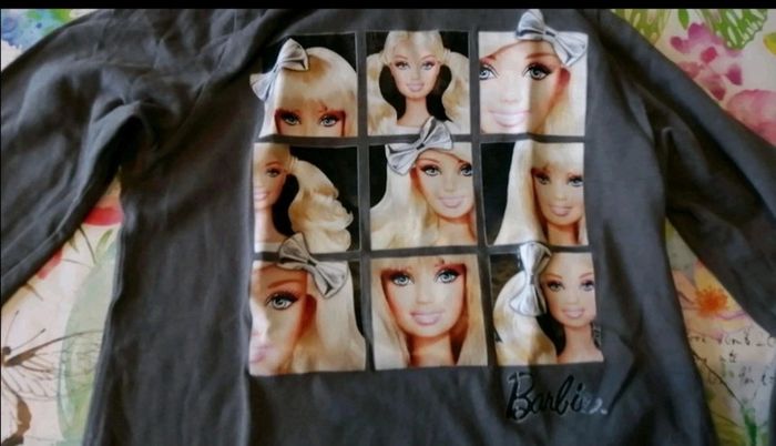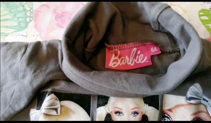 Pour accéder aux vêtements taille 6 ans appuyez sur--> #kat59147fille6ans Propose ce t shirt Manches longues col roulé de marque barbie. Logo un peu délavé et petit accroc au col. Couleur marron clair-kaki #hiverfille6ans #colroulé #barbie